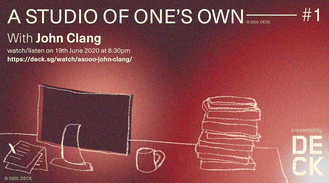 A Studio of One’s Own is a series of weekly online dialogue sessions that seeks to reach out internationally to the quiet voices of Southeast Asia, catching up on their changing creative routines having been confined to their own home space. In casual conversation with DECK, the invited artists will share their thoughts on creativity and creation under lockdown and the impact of quarantine on their respective practices and involvement in the scene.